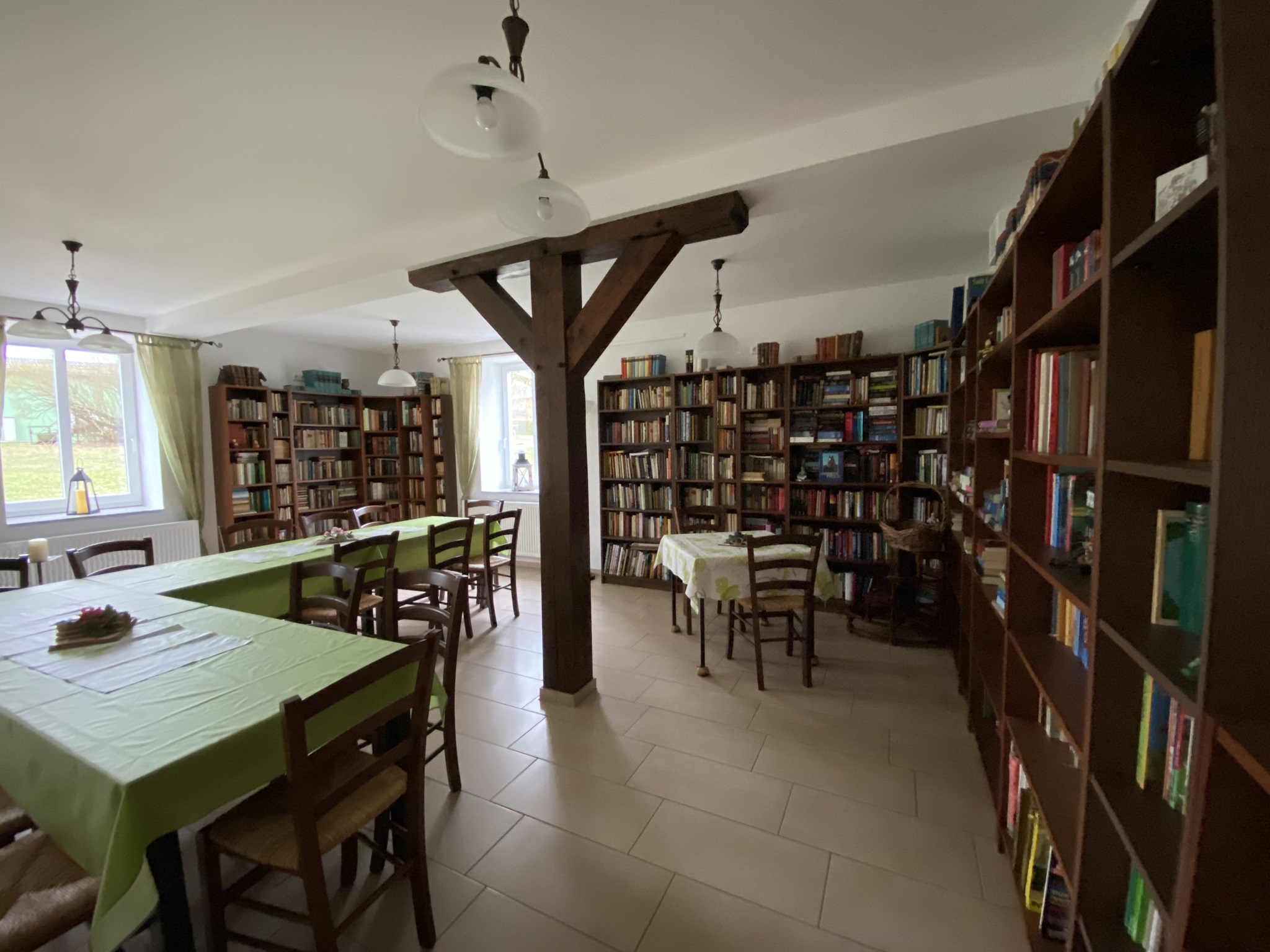 Die Luft ist durchzogen von dem vertrauten Duft von Papier und Tinte, und leise Gespräche und das Rascheln von Seiten schaffen eine harmonische Kulisse. Hier findet jeder Leser seinen Platz, sei es für eine kurze Auszeit oder für stundenlanges Schmökern. Diese kleine Bibliothek ist nicht nur ein Ort des Wissens, sondern auch ein Rückzugsort, der die Fantasie anregt und die Seele nährt.