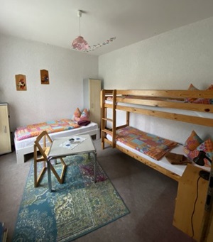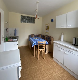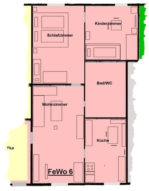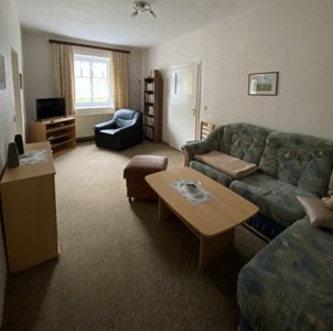 Die Wohnung 6 ist eine geräumige 3-Raum-Wohnung zu ebener Erde mit einem Schlafzimmer, einem Kinderzimmer und einem Wohnzimmer, einem Bad mit Badewanne und einer Küche.Der Preis der Wohnung ist für eine Belegung von bis zu 4 Personen. Aufbettungen sind möglich. Im Schlafzimmer ist für Kleinkinder ein Kinderbett vorhanden.